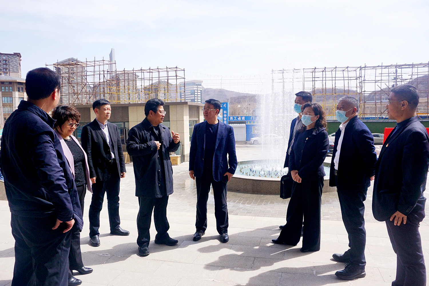 張建軍董事長首先向李晉宇市長匯報了新辦公大樓進展情況的匯報,隨后陪同實地踏查了國控大廈辦公區(qū)、會議室、職工食堂等功能區(qū)。