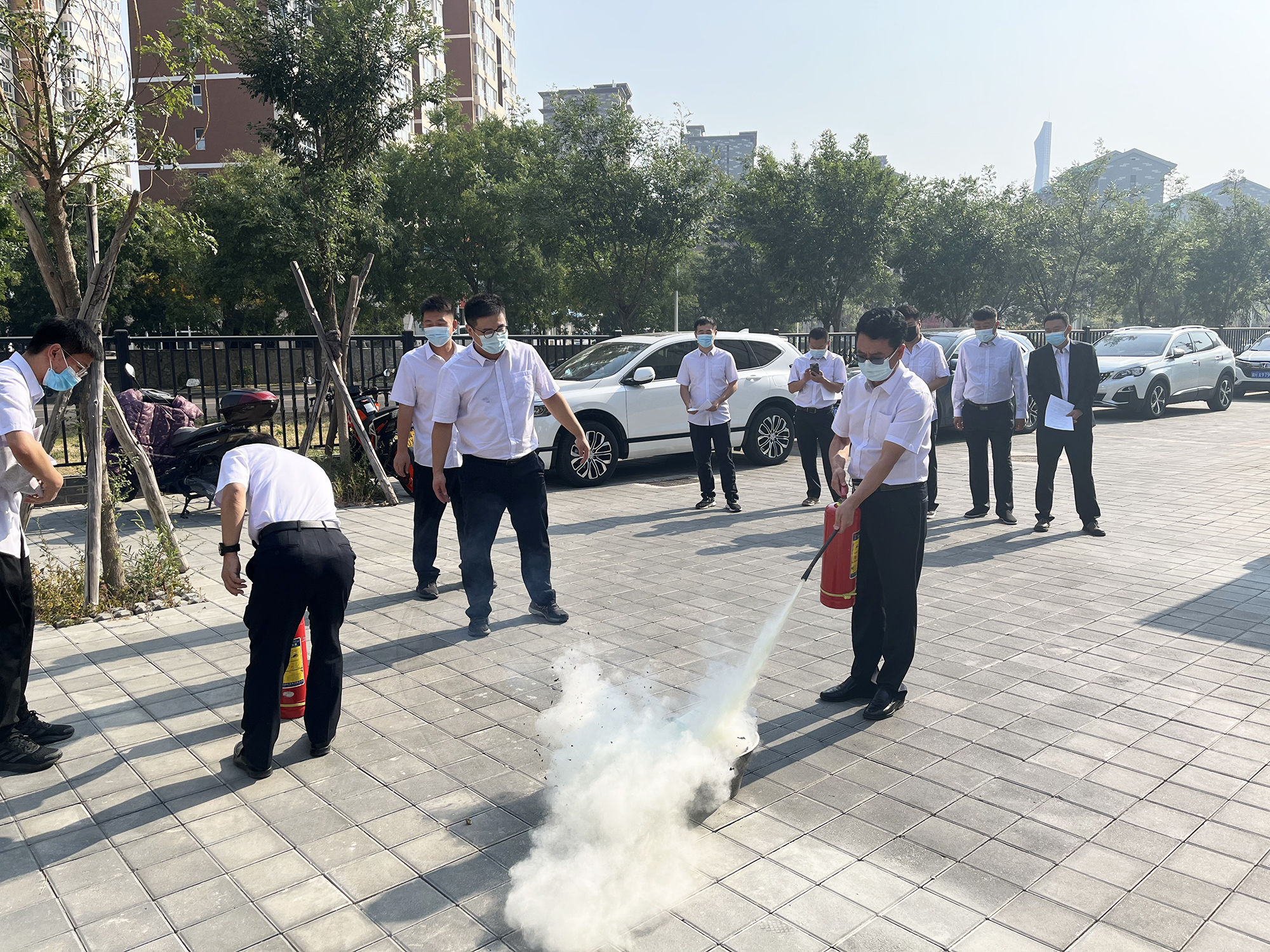 消防逃生演練結(jié)束后,為進(jìn)一步鞏固實(shí)踐效果,演練小組重點(diǎn)講解并示范了滅火器的使用方案,現(xiàn)場(chǎng)員工逐一上場(chǎng)進(jìn)行了實(shí)際操作。